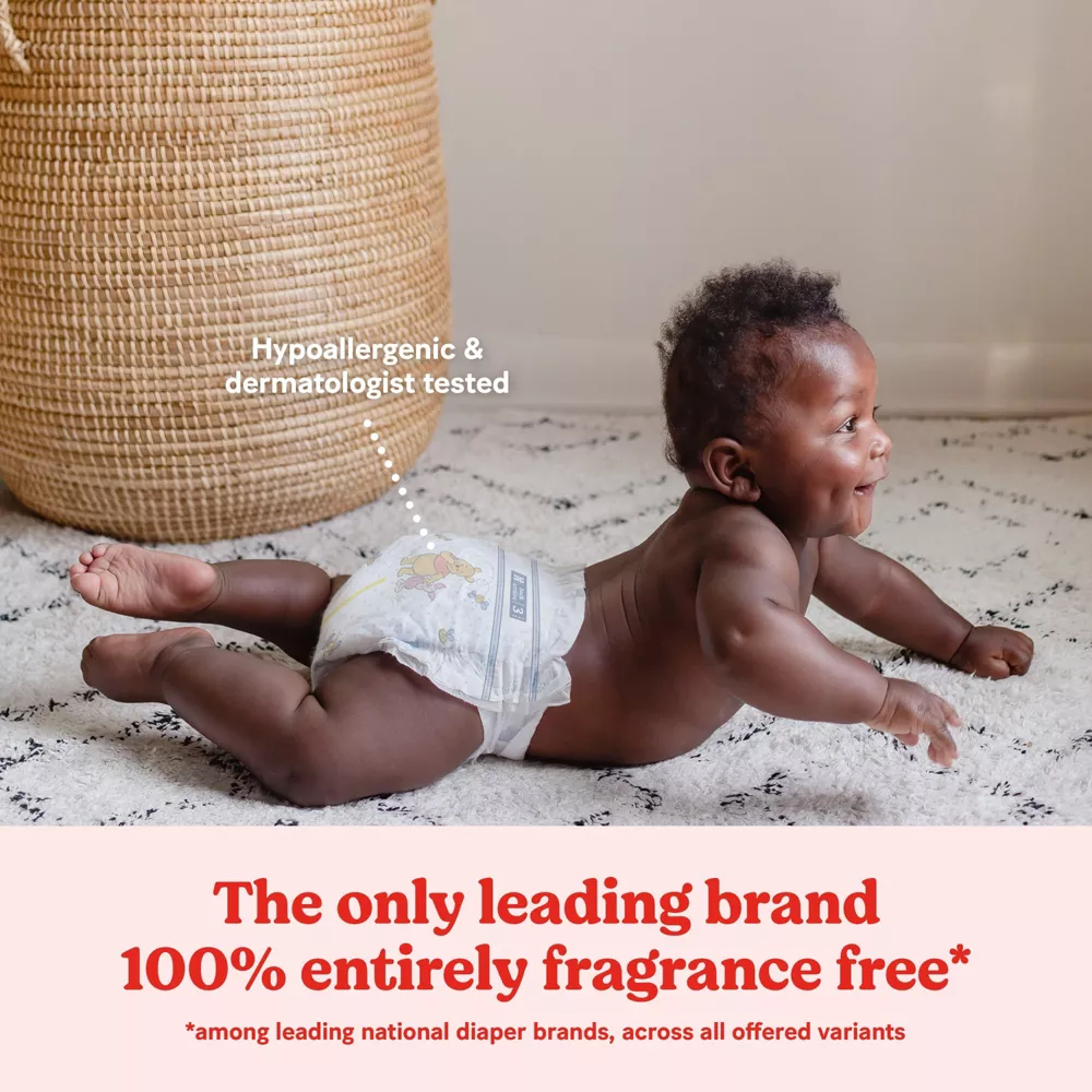 Huggies takes a step further by being the only leading brand entirely fragrance-free*, free from parabens, lotions, elemental chlorine, and natural rubber latex. The color-changing wetness indicator keeps you informed about when it’s time for a diaper change. Adorned with charming Disney Winnie the Pooh designs, Little Snugglers Diapers are available in various sizes to accommodate your baby’s growth.